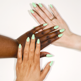This is a creamy, warm, mint green gel nail color!